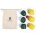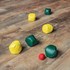 Boules et cochonnet : polyuréthane garnis de carbonate de sodium. Sac en coton