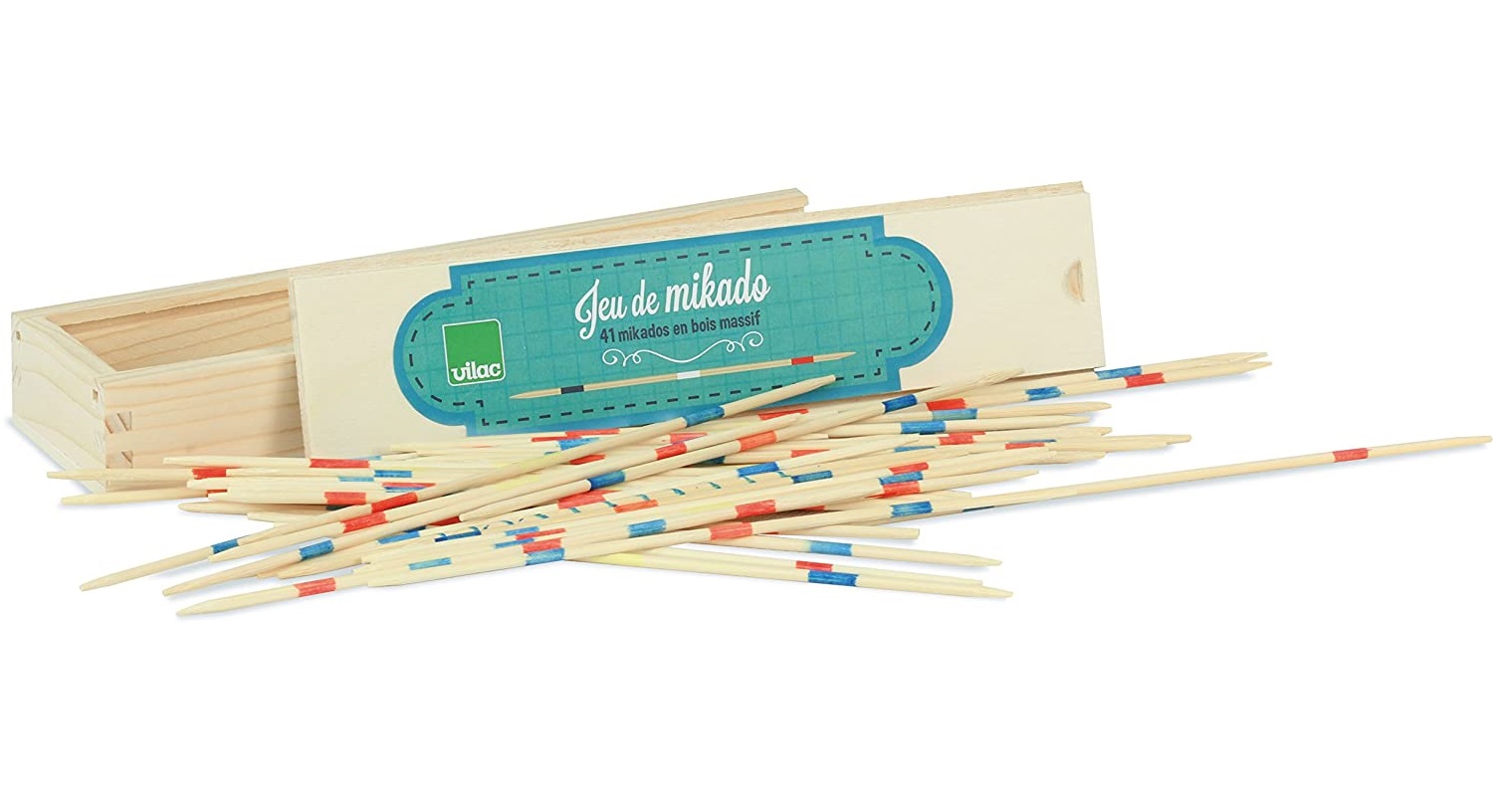Mikado, un jeu en bois de la marque Vilac. Réf 6063.Cet article ne convient pas aux enfants de moins de 3 ans.Age minimum recommandé : 4 ansAge maximum recommandé : 12 ans