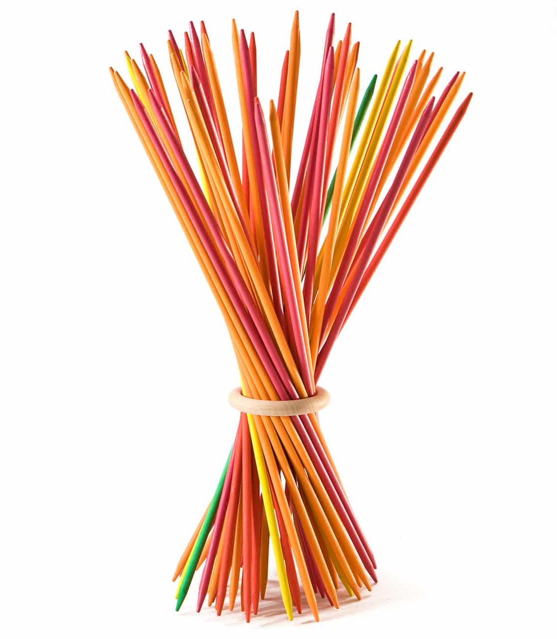 Ce jeu de mikado géant (40 cm) devient un objet décoratif très original : les bâtons en bois colorés se mettent dans l'anneau et les mikados s'ouvrent comme un bouquet de fleurs.