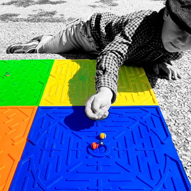 - Ce tapis reproduit les parcours que les billes empruntent sur les plaques d'égout de la cour de récré !