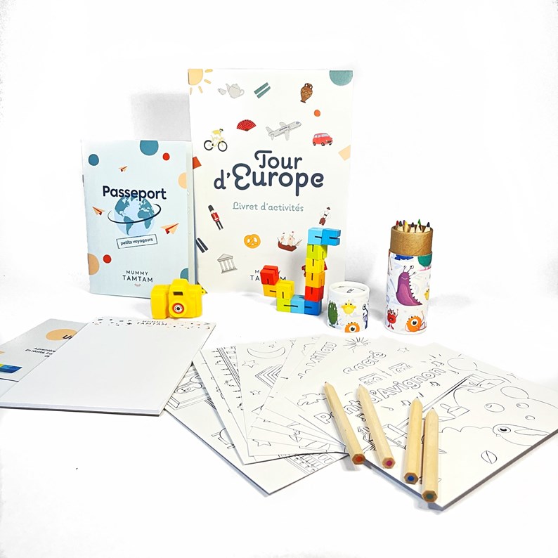 - Carnet des jeux et activités ""Tour d'Europe"" de 48 pages : coloriages, labyrinthes, cherche et trouve... Votre enfant découvrira les pays Européens tout en s'amusant