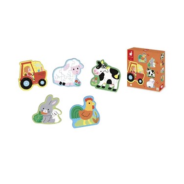 Partez à la découverte de l'univers de la ferme, avec ces 5 puzzles évolutifs composés de 2, 4, 6, 8 et 10 pièces. Adapté aux petites mains, cet ensemble de puzzles évolutifs aide votre enfant à progresser à son rythme tout en s'amusant. Pratique, chaque puzzle a un fond de couleur unique pour faciliter leur construction. Idéal pour développer la motricité fine et la logique. Puzzles en carton FSCTM pour les enfants à partir de 2 ans.