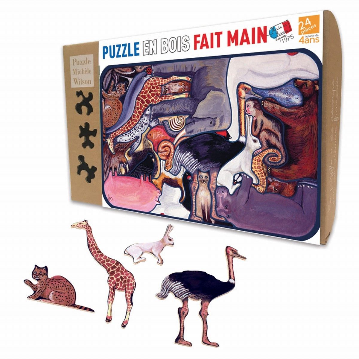 Ce puzzle en bois issu de forêts gérées durablement est fabriqué à la main en France par la maison Michèle Wilson, livré dans une boîte kraft en carton recyclé qui s'ouvre et se ferme très facilement. L'étiquette coulisse pour garder sous la main la grande image à recomposer ! Les puzzles Michèle Wilson sont ludiques et éducatifs, conçus pour les enfants. Chaque puzzle est unique et résulte du savoir-faire et de l'imagination de l'artisan. Ils sont créés par l'homme plutôt que par la machine.