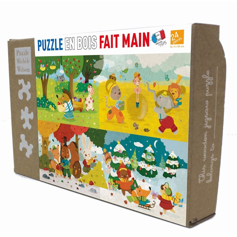 Ce puzzle en bois issu de forêts gérées durablement est fabriqué à la main en France par la maison Michèle Wilson, livré dans une boîte kraft en carton recyclé qui s'ouvre et se ferme très facilement. Chaque puzzle Michèle Wilson est unique et résulte du savoir-faire et de l'imagination de l'artisan. Ils sont créés par l'homme plutôt que par la machine.