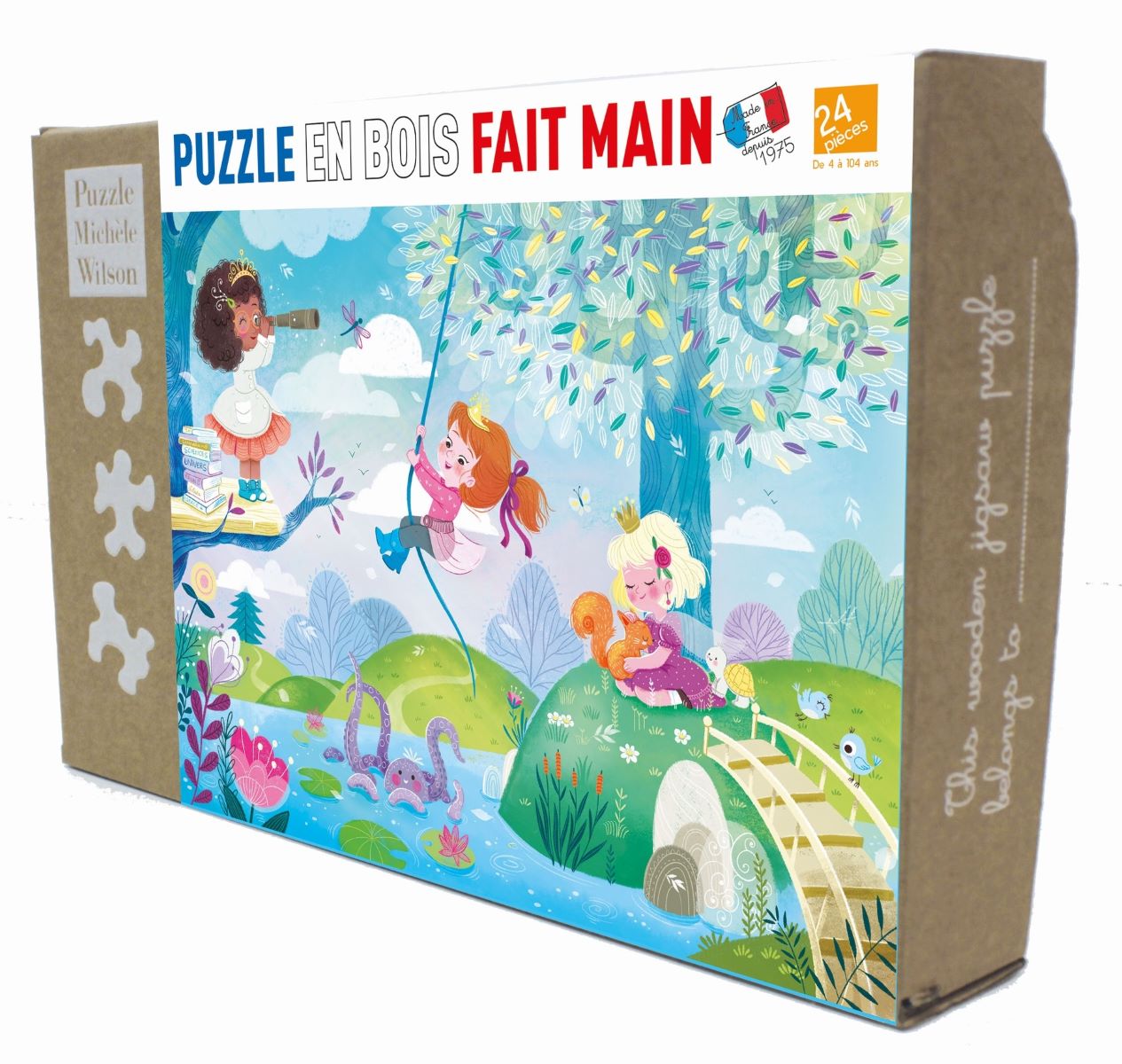 Ce puzzle en bois issu de forêts gérées durablement est fabriqué à la main en France par la maison Michèle Wilson, livré dans une boîte kraft en carton recyclé qui s'ouvre et se ferme très facilement. Chaque puzzle Michèle Wilson est unique et résulte du savoir-faire et de l'imagination de l'artisan. Ils sont créés par l'homme plutôt que par la machine.