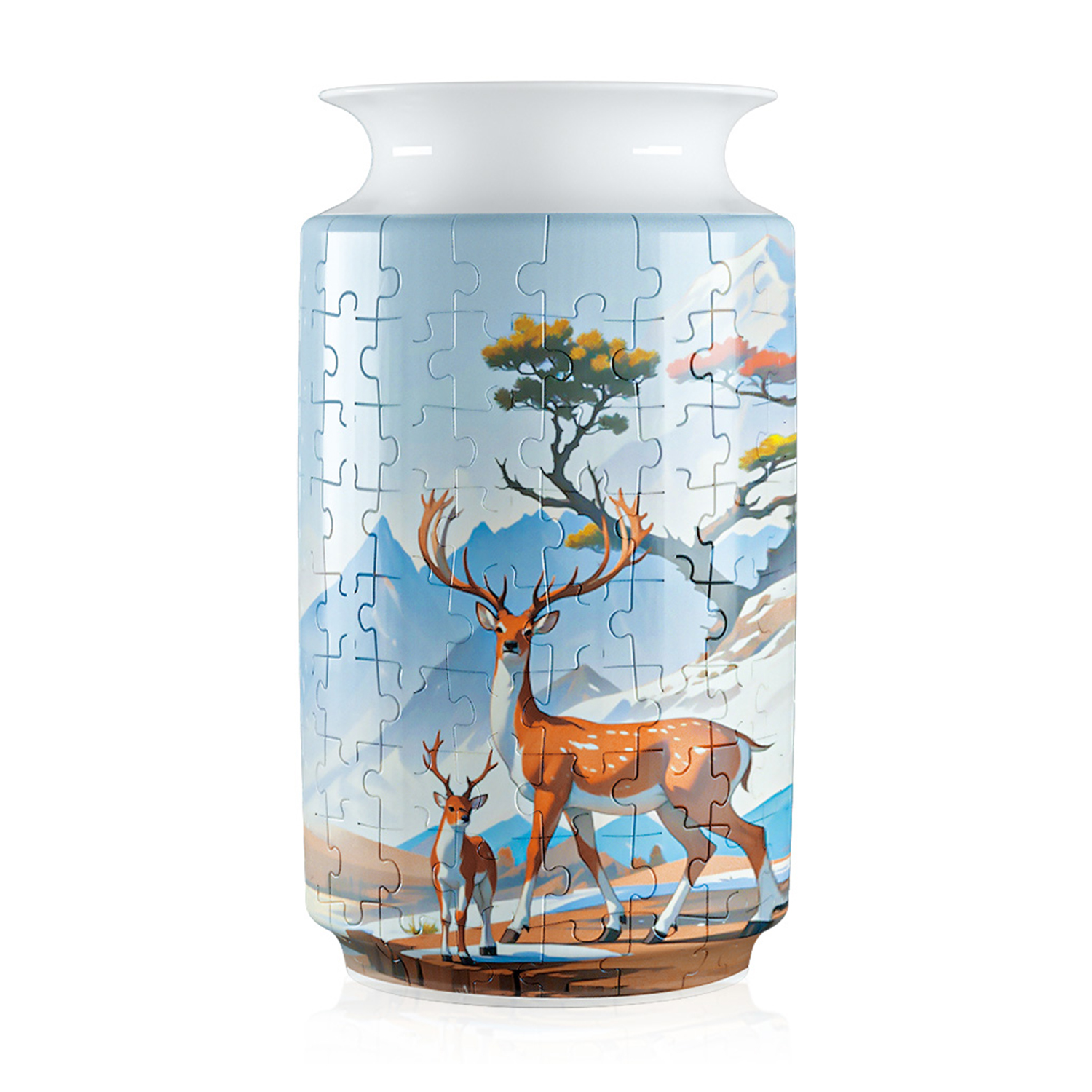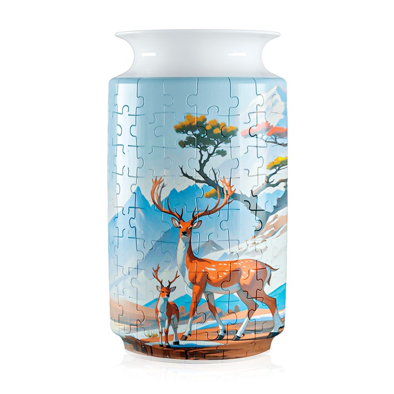 Puzzl? 3d en abs avec 162 pièces. Design vase traditionnel avec cerf.