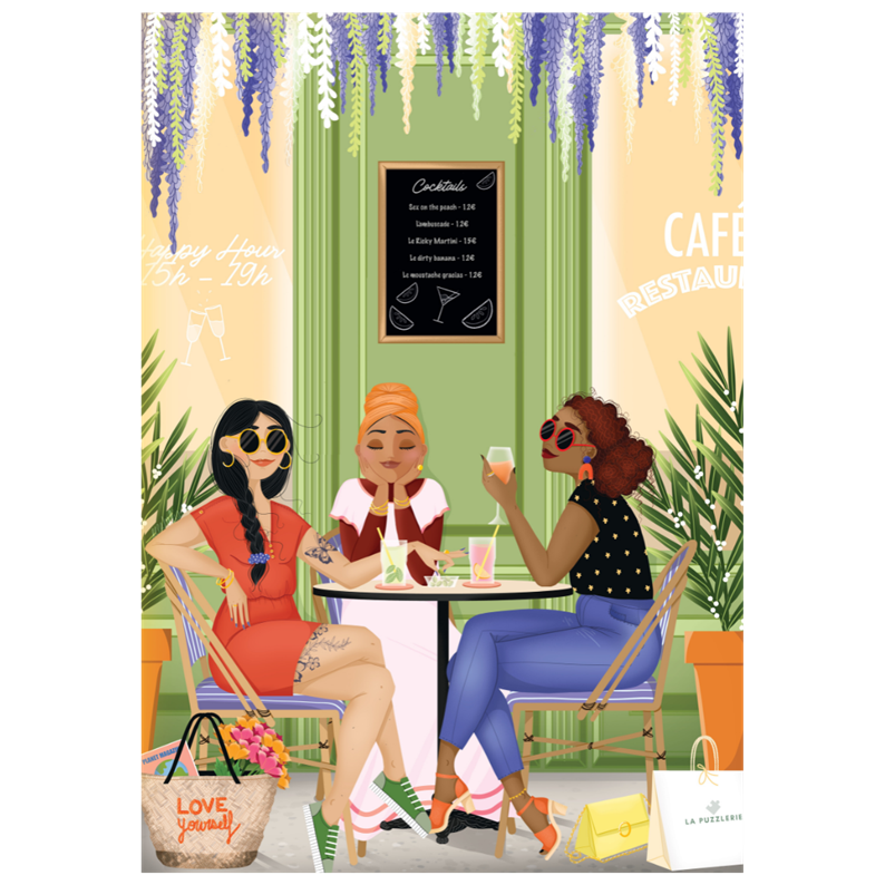 Happy Hour représente un moment de convivialité et de partage entre amis autour d'un verre. Ces couleurs vives nous rappellent les beaux jours d'été et la légèreté de cette saison sous le signe de la détente.