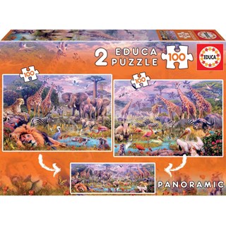 Deux puzzles de 100 pièces d'animaux sauvages, deux fois plus amusants !Assemblez séparément chaque puzzle de 100 pièces et une fois terminés, mettez-les ensemble et vous obtiendrez un fantastique puzzle panoramique. Composé de grandes pièces avec une finition parfaite, pour une manipulation simple et sûre pour les enfants.Assemblez chaque puzzle de 100 pièces séparément et une fois terminé, assemblez-les et vous obtiendrez un fantastique puzzle panoramique. Stimulent l'attention et contribuent au développement de la psychomotricité, de la curiosité et de l'imagination des plus jeunes. Dimensions approximatives des puzzles assemblés : 26 x 18 cm. Recommandé à partir de 6 ans