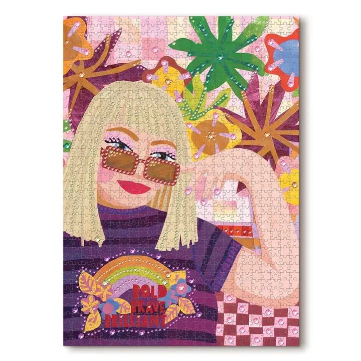 Ce fabuleux puzzle original de 1000 pièces créé par l'incomparable Sandra Gale. Une fois que vous l'avez deviné, amusez-vous à l'éblouir avec des autocollants en forme de gemme. Le casse-tête ultime pour toutes les femmes fortes, les femmes fortes émergentes et les partisanes des femmes fortes !