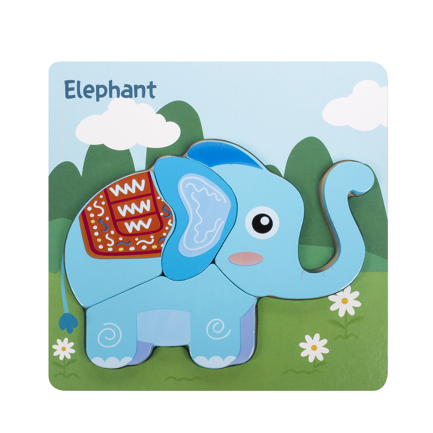 Puzzle en bois pour enfants, de 4 pièces. Conception éléphant.