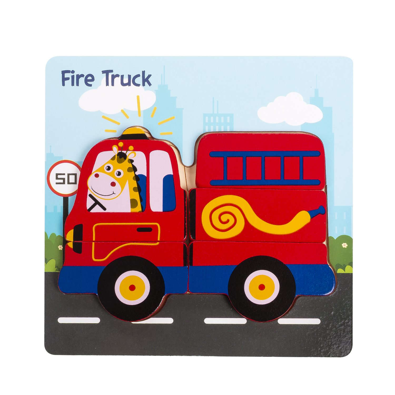 Puzzle en bois pour enfants, de 5 pièces. Conception camion de pompiers.