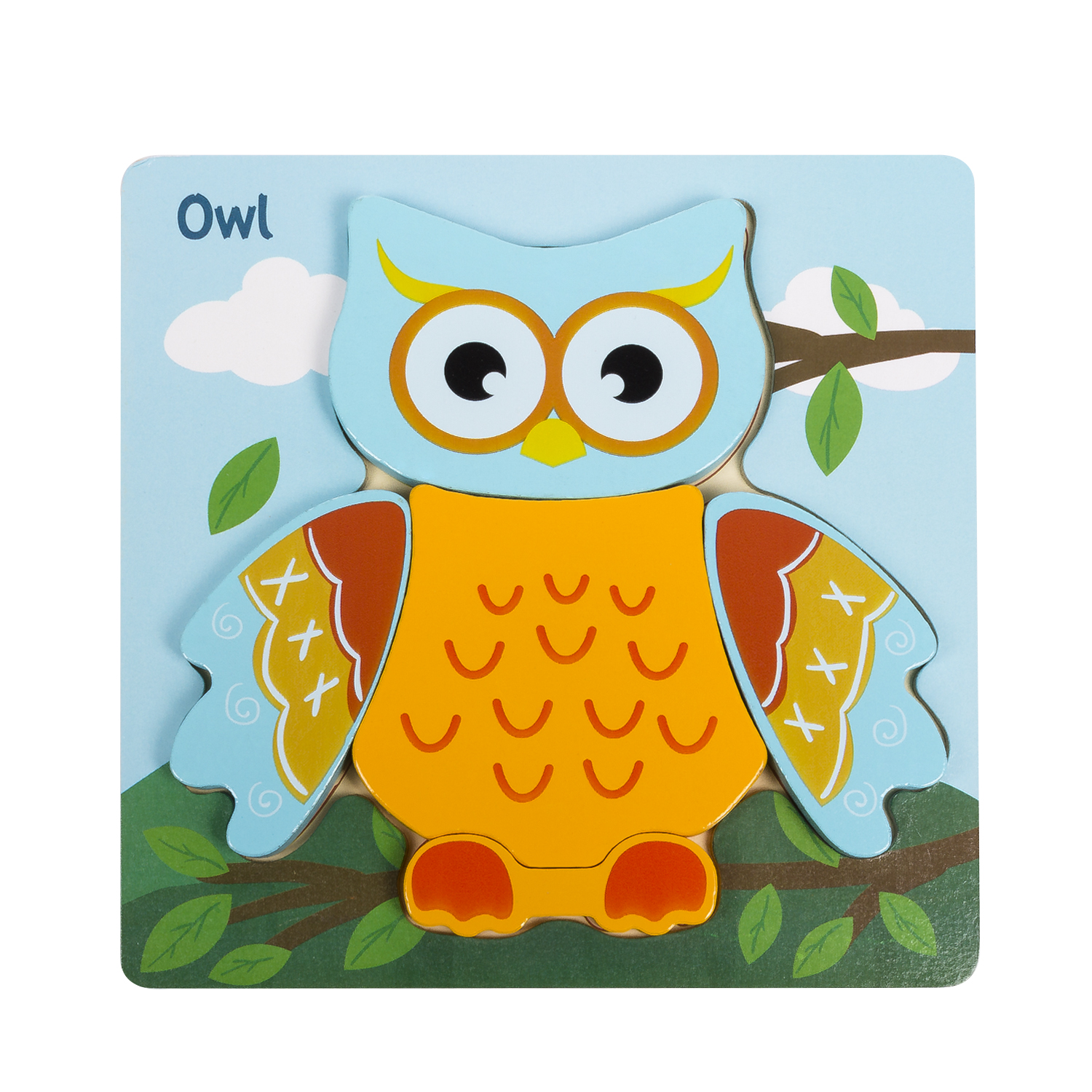 Puzzle en bois pour enfants, de 5 pièces. Design hibou.