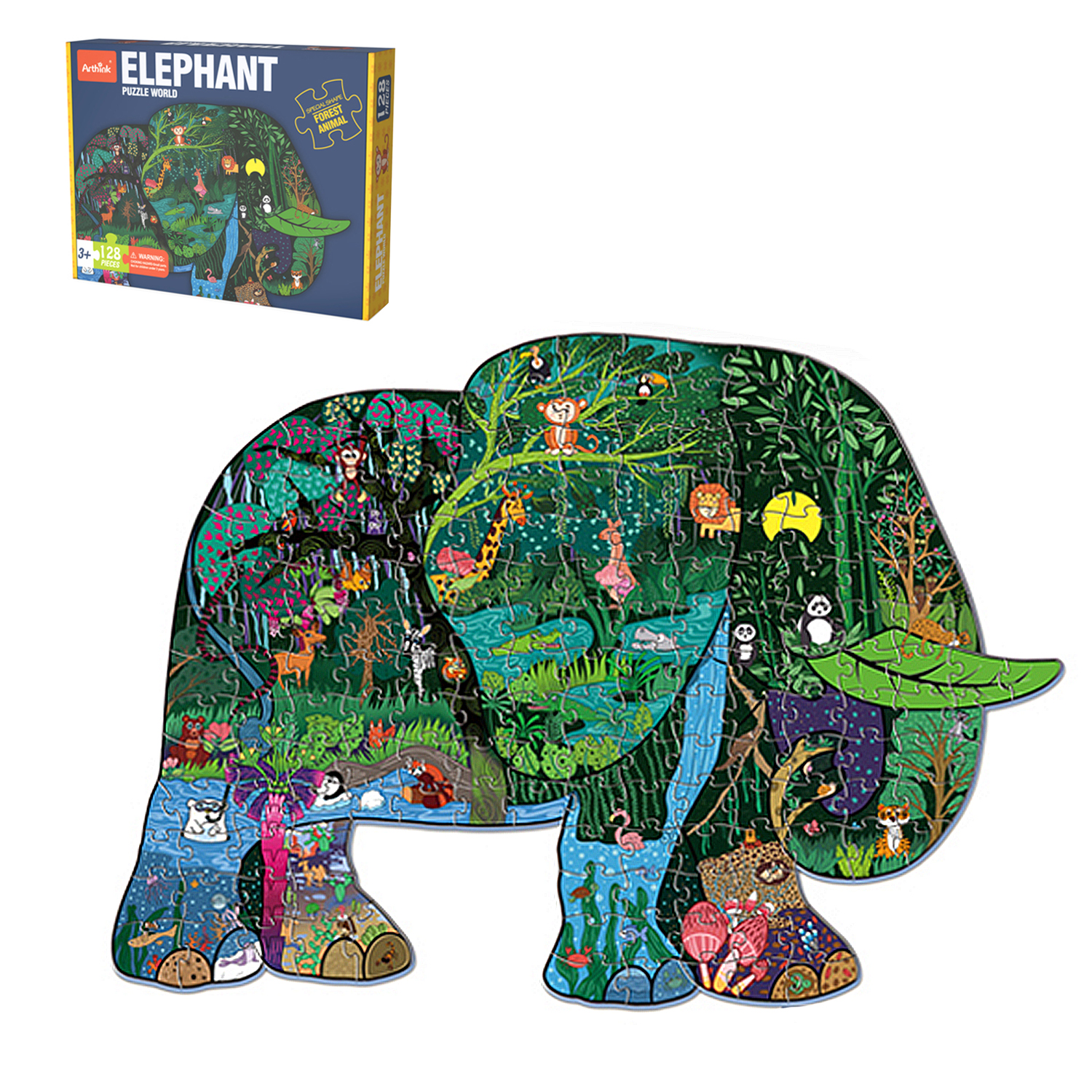 Puzzle en carton avec 128 pièces. Design éléphant.