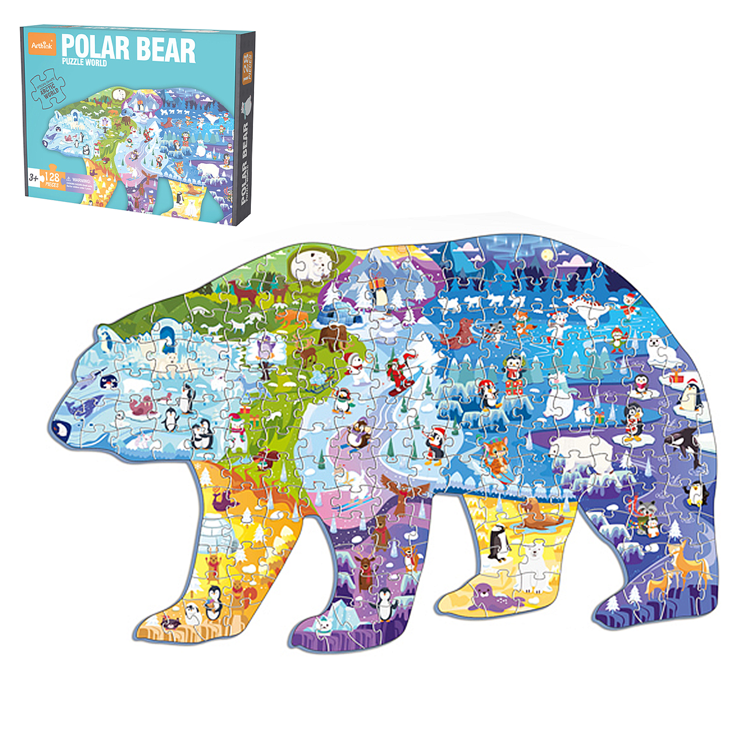 Puzzle en carton de 128 pièces. Design ours polaire.