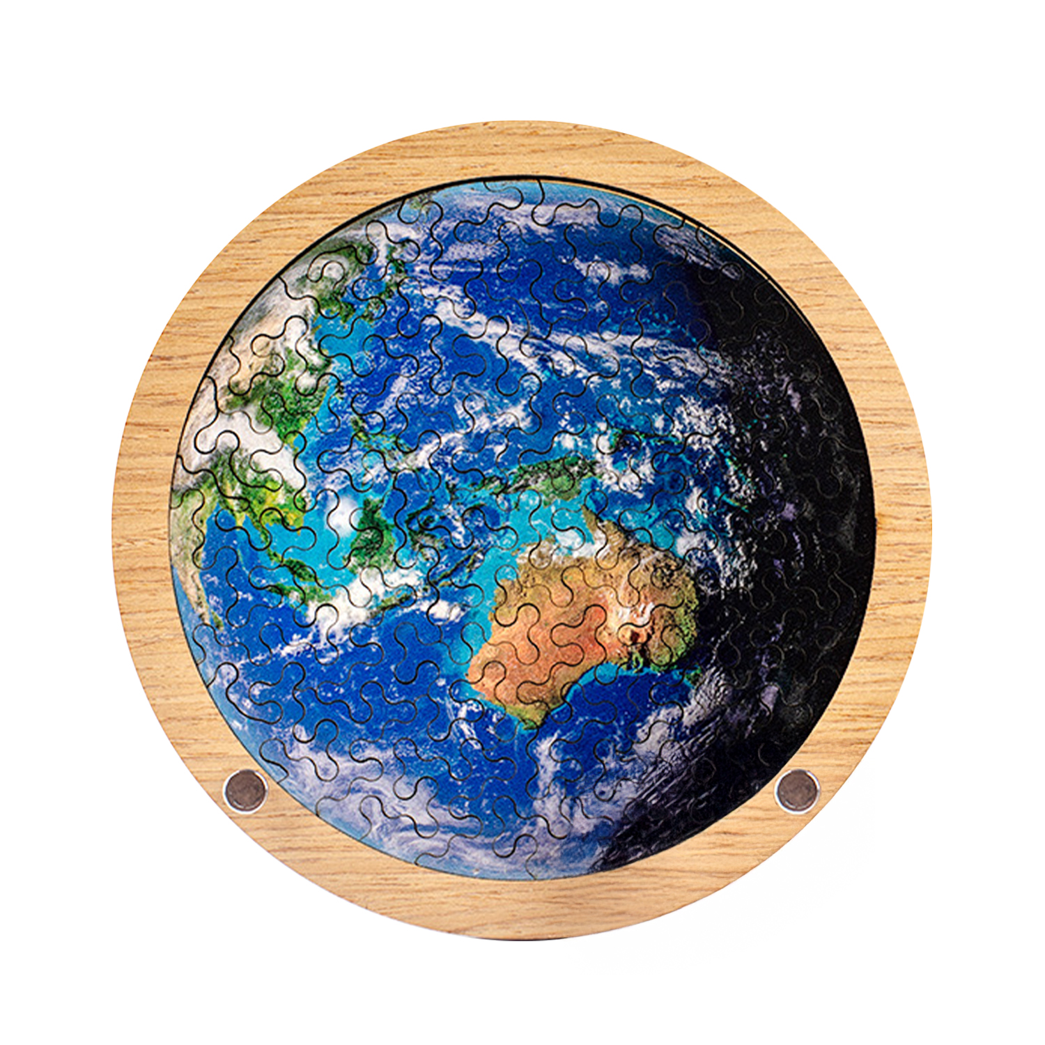 Puzzle et cadre en bois avec 34 pièces. Design terre.