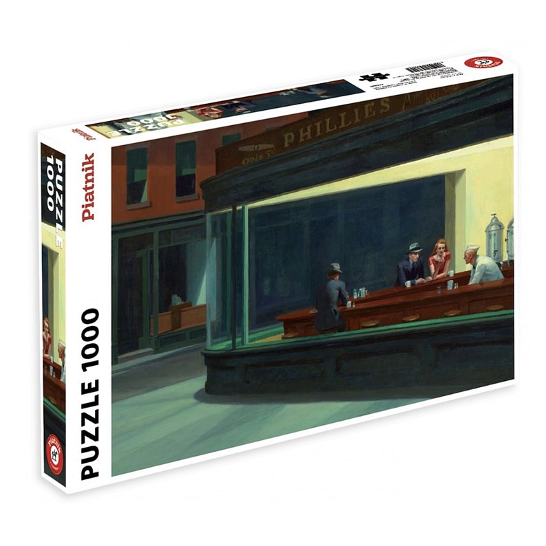 Ce puzzle de 1000 pièces reprend la célèbre peinture de Hopper. Egayez vos soirée avec ce splendide défi.