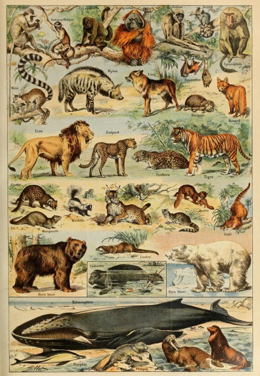 Puzzle illustration du larousse pour tous : mammifères, 19è s - 1000 pièces