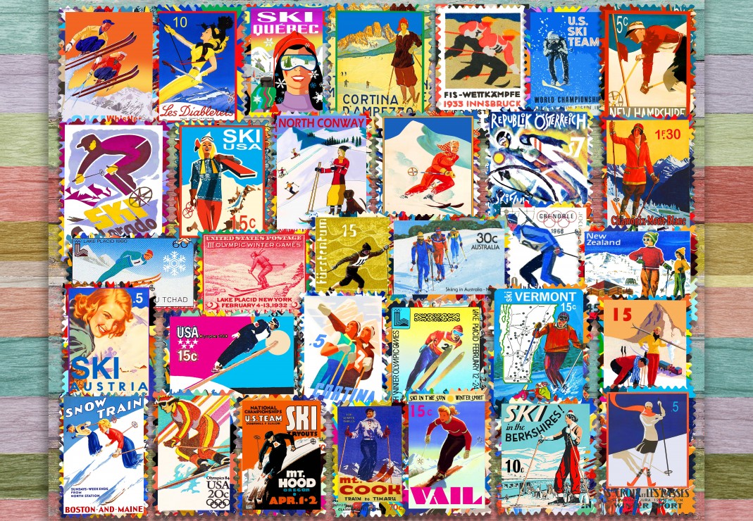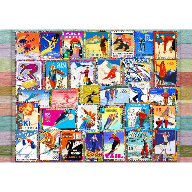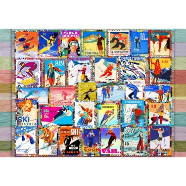 Puzzle ski stamp posters - 1000 pièces