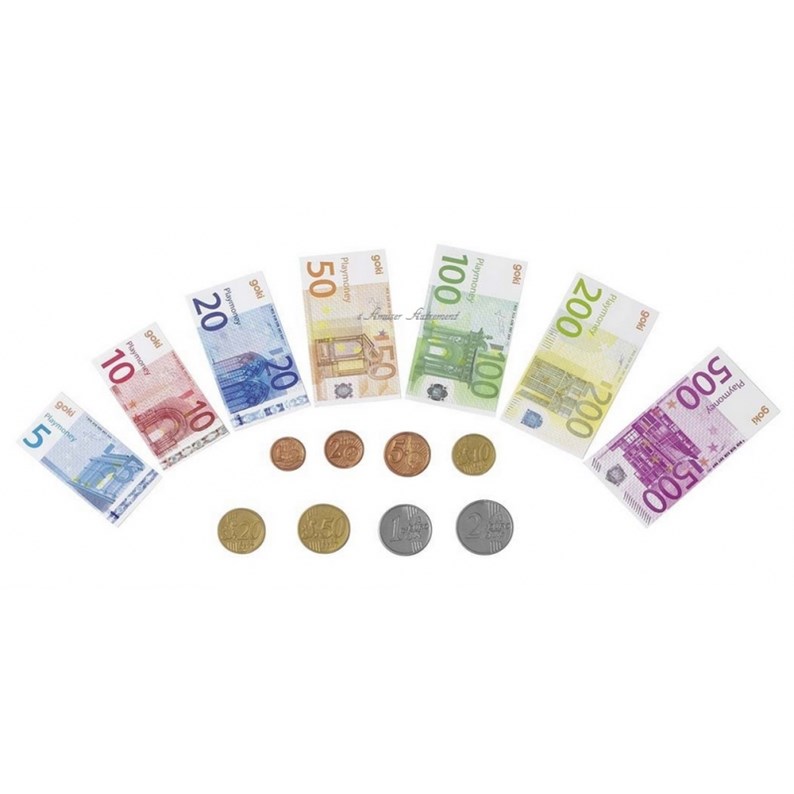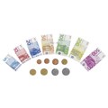 Set de 84 billets de banque en papier et 32 pièces de monnaie en plastique.