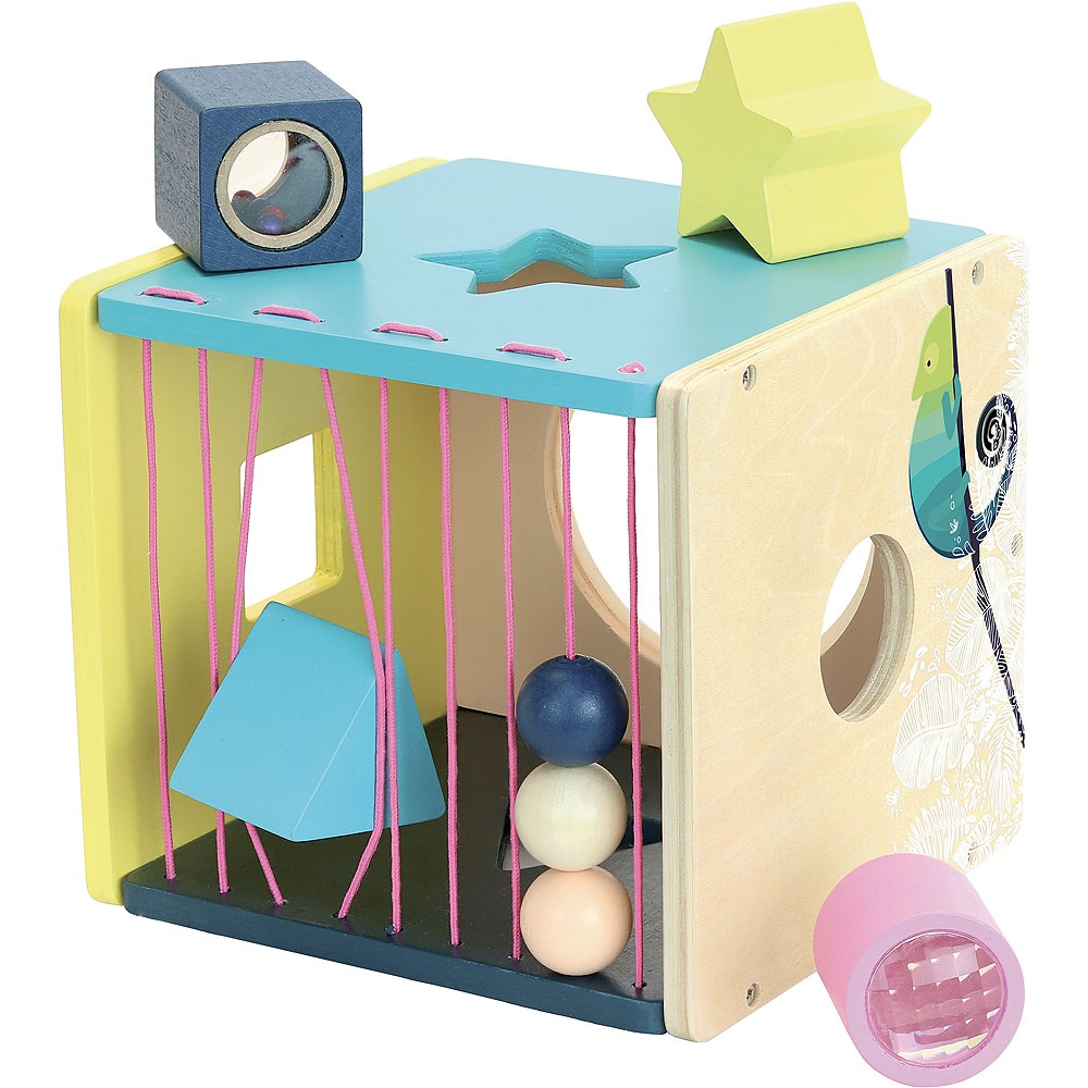 Boite à formes d'éveil Sous la Canopée, un jouet en bois premier âge de la marque Vilac. Référence 1065.Age minimum recommandé : 1 anAge maximum recommandé : 3 ans