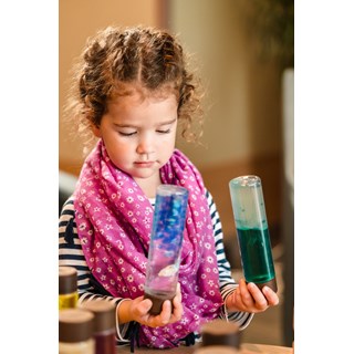 Dès 3 mois, cette bouteille sensorielle accompagne petits et grands dans leurs découvertes, leurs jeux et leurs moments de calme. Inspirée des méthodes alternatives Montessori et Snoezelen, elle invite à un voyage sensoriel doux et captivant.