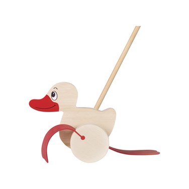 Canard à pousser en bois, un jouet premier âge de la marque Goki.Age minimum recommandé : 1 anAge maximum recommandé : 3 ans