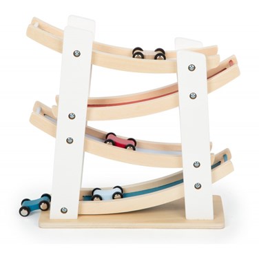 La laque blanche et le bois naturel, combinés à la conception classique des couleurs des rampes, font du train un accroche-regard qui se fond discrètement dans n'importe quelle chambre d'enfant. Favorise la motricité ainsi que la coordination œil-main et ne laissera pas l'ennui s'installer si vite dans la chambre des enfants ! Rangé sur l'étagère de la chambre d'enfant, le circuit de course s'intègre parfaitement dans tout aménagement de pièce, car le bois naturel et le bois laqué blanc dominent l'aspect, sans que les enfants ne doivent manquer un circuit de course coloré en jouant.