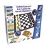 * Contenu du coffret : 1 plateau de jeu magnétique + 3 cartes de jeu double-face + 5 dés + 32 pièces d’échecs + 30 pions de dame + 34 pions de couleur