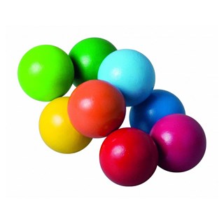 Huit boules mobiles de couleurs différentes reliées sur une ficelle. Le jouet soutient la motricité fine de l'enfant. Le produit répond aux exigences de l'UE en matière de sécurité des jouets.
