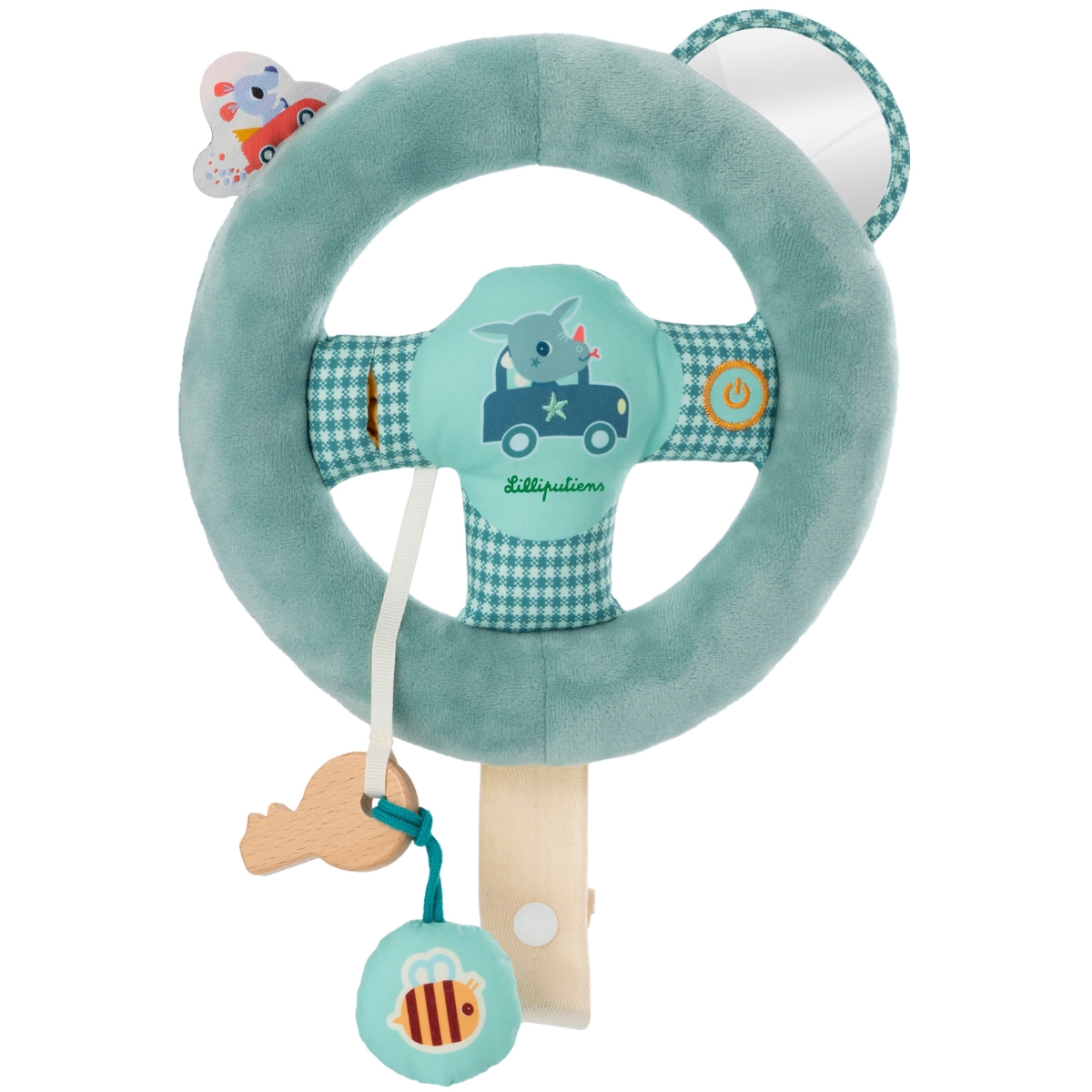 - S'accroche au siège voiture.