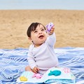 Les pages 3 et 4 sont conçues pour développer la psychomotricité fine de l'enfant, avec un avion, un bateau et une voiture que l'enfant peut faire glisser d'un côté à l'autre, améliorant ainsi son sens du toucher.