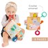 - Les parties qui dépassent du livre incitent bébé à tourner les pages et à découvrir différentes surprises : Kiwi l'oiseau qui se cache derrière un nuage, Sophie la girafe qui joue à cache-cache avec les feuilles, la pyramide de sable crépitant...