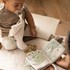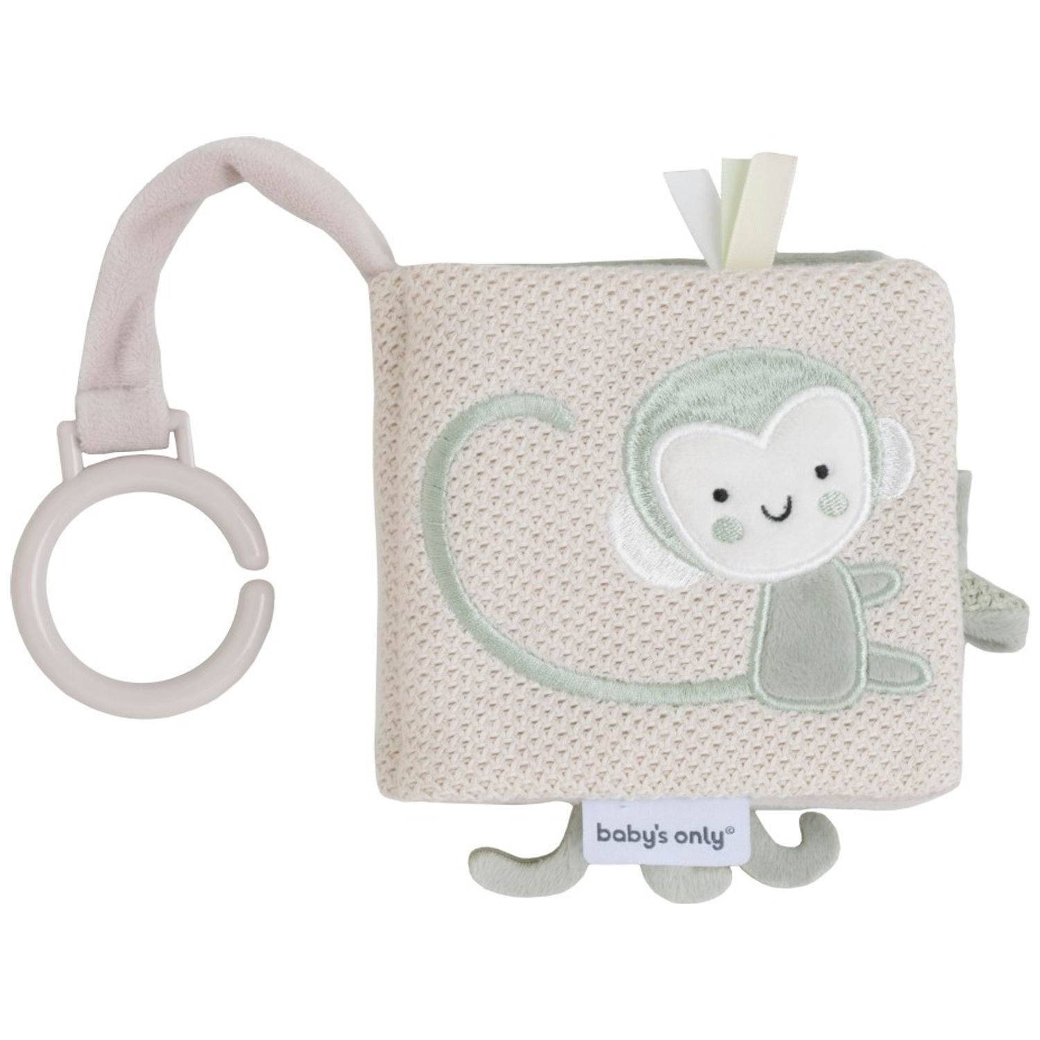 Ce livre en tissu doux réunit quatre adorables animaux — singe, baleine, dinosaure et lapin — pour éveiller la curiosité de bébé. Grâce à ses textures variées, son miroir sécurisé et son tissu bruissant, il stimule les sens et favorise la motricité fine. Avec son anneau en plastique robuste, il s’accroche facilement à une poussette ou un siège auto. Un jouet sûr, éducatif et poétique à emporter partout.