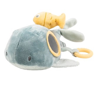 Peluche d'activité Sally la baleine, un jouet d'éveil de la marque Nattou. Réf. 950282.Age minimum recommandé : 12 moisAge maximum recommandé : 3 ans