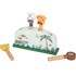 En appuyant sur les têtes des animaux, on les fait bouger de bas en haut. En appuyant plus fort, on peut même les faire sauter hors de leur cachette : appuie, relâche et attrape !