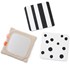- Contient aussi un miroir et deux cartes aux motifs contrastantés.