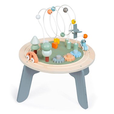 Accompagnez le développement de votre enfant avec tout un univers d'activités rassemblées dans cette table en bois évolutive.