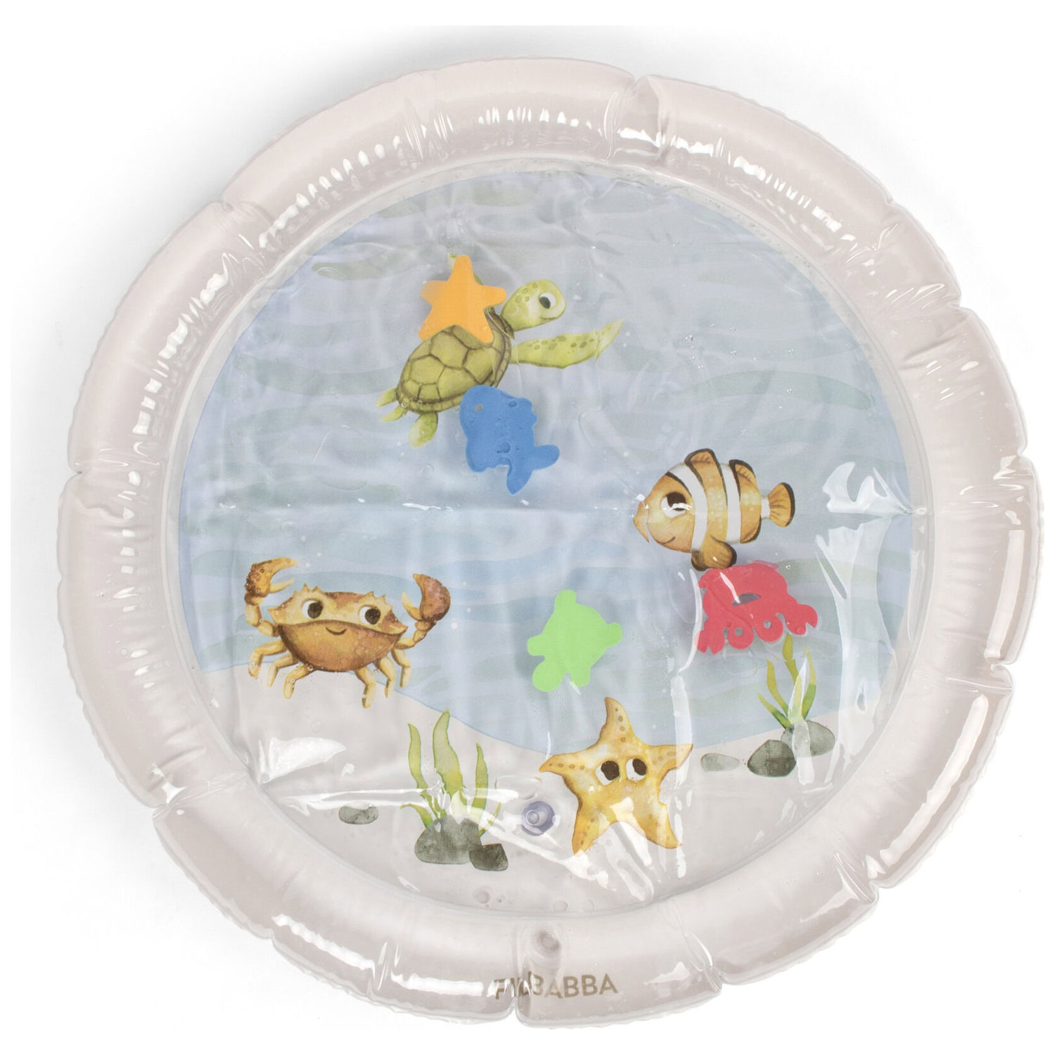 Rempli d’eau en son centre, il invite les petites mains à explorer et stimule la coordination tout en amusant bébé avec 4 adorables créatures marines illustrées à la main. Ses bords gonflables assurent confort et sécurité, tandis que son format Ø 65 cm est parfaitement adapté aux premiers instants d’éveil. Pratique, il se vide et se range facilement après chaque utilisation.
