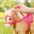 Lorsque BABY born se trouve dans les boxes et qu'elle sort les pins de la caisse du cheval, il y a certainement un concours hippique. C'est à ce moment-là qu'elle rend son adorable poney particulièrement beau. La selle et la bride roses sont décorées d'épingles colorées et la crinière et la queue blanches sont abondamment coiffées.Le mignon petit cheval sait déjà exactement ce qui se passe et hennit d'excitation. Il le fait lorsqu'on appuie sur son oreille droite. En appuyant sur l'oreille gauche, le cheval se met en mouvement. Il préfère marcher sur des surfaces planes. On entend alors des bruits de sabots et des bruits de chevaux joyeux. Une nouvelle pression sur l'oreille gauche arrête la promenade à cheval.