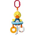 Avec ses couleurs vives, son doux cliquetis et ses effets de jeu et matériaux variés, le drôle de petit canard dans sa bouée est un divertissement toujours passionnant. La suspension pratique peut être fixée de manière flexible à la poussette, à la coque de bébé ou au lit - le mobile est ainsi toujours prêt à l'emploi, à la maison comme en déplacement. L'anneau de préhension transparent avec ses perles colorées incite à saisir et à secouer, et l'anneau de dentition à picots masse agréablement les gencives pendant la poussée dentaire.