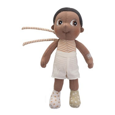 Quant à moi, je suis habillé d'un haut rayé, d'un short amovible et de chaussures à pois. J'ai une paire de ficelles sur le dos pour facilement m'accrocher à un sac, une poussette ... n'importe où, et suivre bébé dans toutes ses aventures.