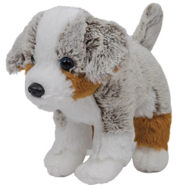 Cette peluche Dani créations en forme de Berger Australien mesure 13 cm.