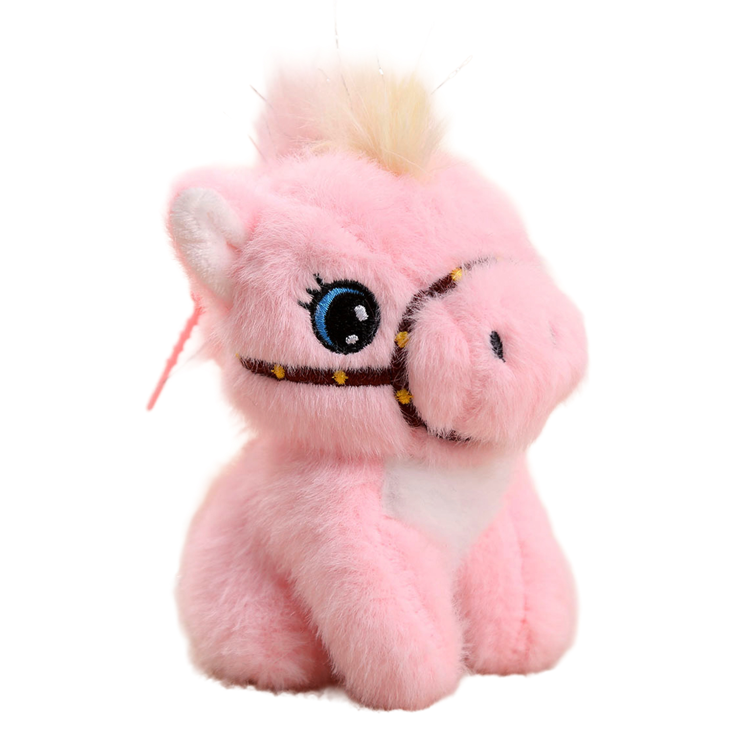 Peluche extra doux et moelleux avec pendentif. Design poulain assis rose. 13 cm.