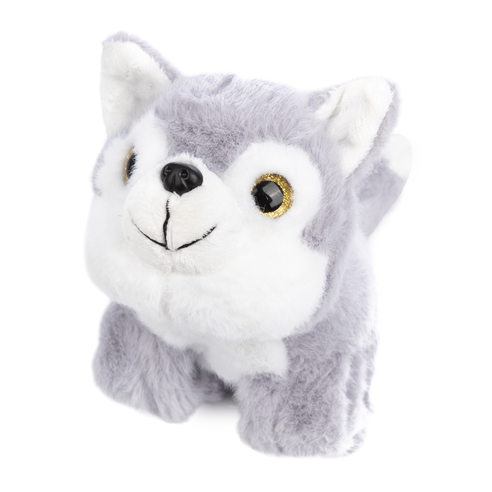 Peluche extra-doux et moelleux. Design husky avec mécanisme rétractable. 18 cm.