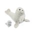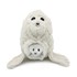 La peluche otarie Ptipotos de 35 cm, couleur blanche et grise, est vendue avec son bébé caché dans son ventre.