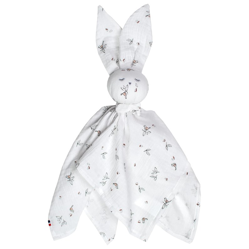 Offrez-vous un doudou d'exception confectionné à la main avec soin en gaze de coton orné d'un charmant motif aux chants d'oiseaux. Ce doudou peut être pour un cadeau vraiment unique avec le de l'enfant ou un surnom, nous proposons de le directement sur le doudou faisant de ce cadeau un souvenir précieux et mémorable !Chez Sevira Kids, nous sommes fiers de nos engagements sociaux et environnementales. Chacun de nos adorables Doudous Lapin est fabriqué de manière éthique et durable , témoignant de notre volonté à préserver la planète. Nous veillons à ce que nos produits respectent les normes de qualité et de durabilité les plus élevées, offrant ainsi à votre enfant un compagnon réconfortant tout en contribuant à un avenir meilleur pour tous. Offrez à votre enfant un cadeau unique, sûr et éthique avec notre Doudou Lapin Artisanal & Personnalisable !Pour tout connnaître sur le doudou plat Melody :