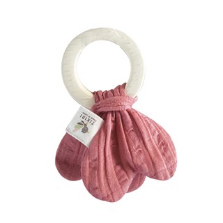 Anneau de dentition en caoutchouc avec mousseline rose poussiéreuse