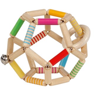 Hochet balle flexible rayée, un hochet en bois fabriqué en Allemagne par Goki. Référence 65195.Age minimum recommandé : 12 moisAge maximum recommandé : 2 ans