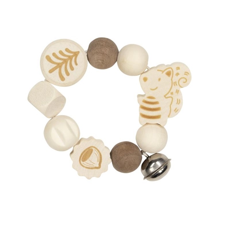 Hochet élastique écureuil, un hochet en bois fabriqué en Allemagne par Goki. Référence 65324.Age minimum recommandé : 12 moisAge maximum recommandé : 2 ans