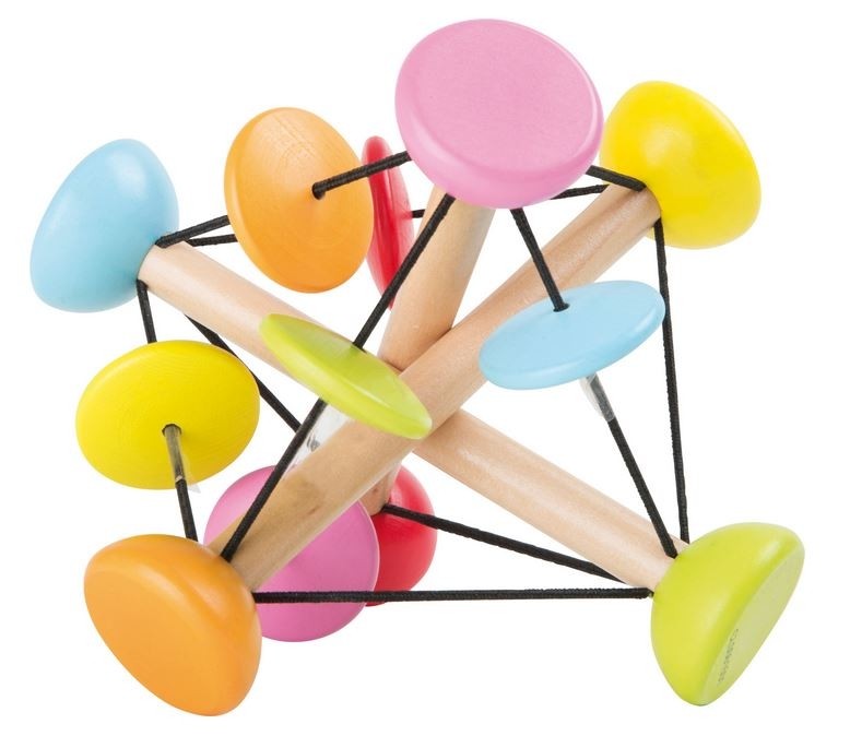 Voici un défi sportif pour les petites mains. Les éléments colorés coulissants claquettent lorsqu'on les secoue, au grand bonheur des tout-petits.